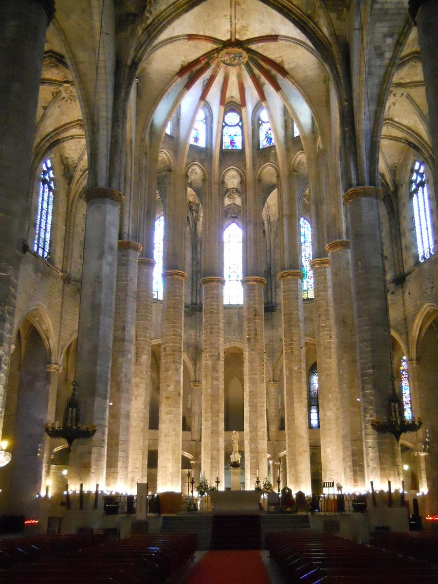 Von Außen sieht sieht die gigantische Kathedrale zwar interessant aus, anders als die anderen über die Stadt verteilten Gaudí-Bauten entspricht sie aber so gar nicht unserem ästhetischen Empfinden. Auch die unabsehbar lange Warteschlange vor dem Eingang und der hohe Eintrittspreis lassen uns schließlich auf den Besuch der Kirche verzichten. Stattdessen gehen wir in Richtung der Altstadt weiter und erkunden dort ausgiebig die Gassen des Barri Gòtic. Eher zufällig finden wir den Mercat de la Boqueria und schlendern durch die Markthallen. In der Nähe der Kirche Santa Maria del Pi legen wir in einem Café eine Pause ein, dann spazieren wir weiter zur Kirche Santa Maria del Mar. Das Gotteshaus war einst vom Meer aus schon von Weitem zu sehen - daher der Name.