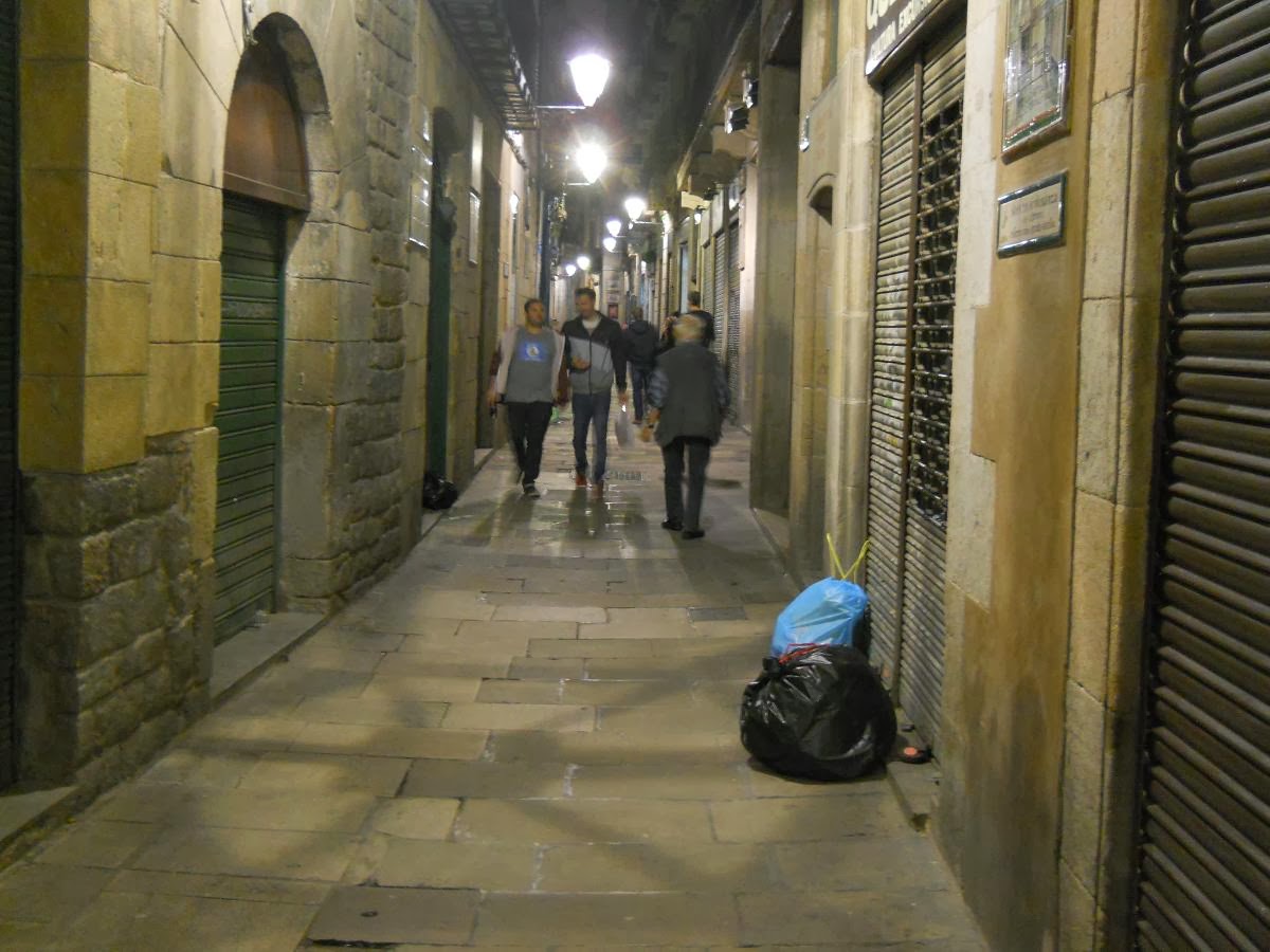 Einst ein florierendes Industrie- und Handelsviertel, machte dieser Stadtteil in der Vergangenheit eher als Tummelplatz von Drogendealern und Prostituierten von sich reden. In den letzten Jahren wurde aber viel in die touristische Infrastruktur investiert und heute gibt es eine Vielzahl von einladenden Restaurants und Bars. In einem der Restaurants werden auch wir fündig und genießen zum Abendessen eine Paella. Auf dem Rückweg ins Hostel erkunden wir noch einige der Ausläufer des Altstadtviertels Barri Gòtic. Doch das frühe Aufstehen und der lange Tag fordern ihren Tribut und so verschieben wir die weitere Besichtigung auf den morgigen Tag.